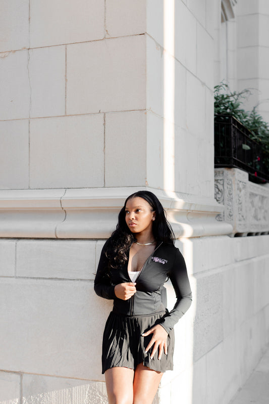 Black Cropped Zipper Jacket